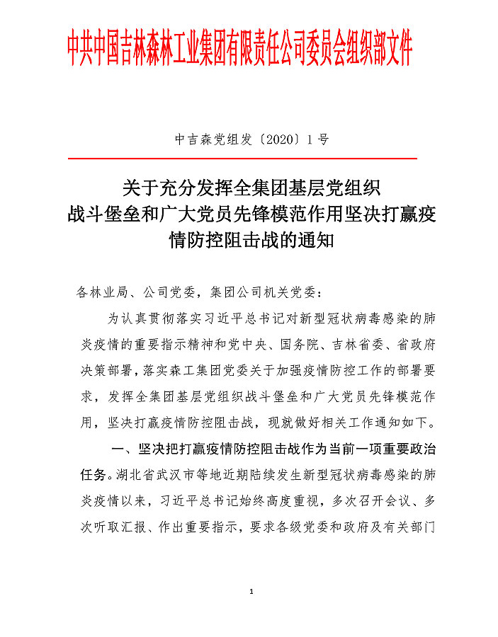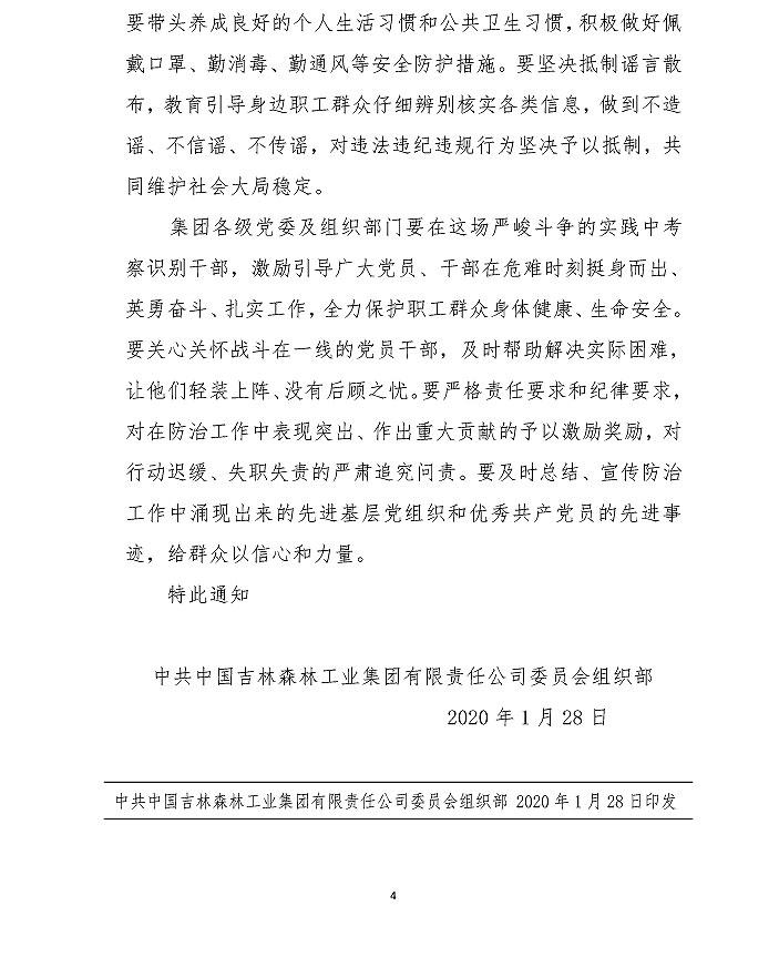 吉林森工集团关于防控新型冠状病毒肺炎的倡议书