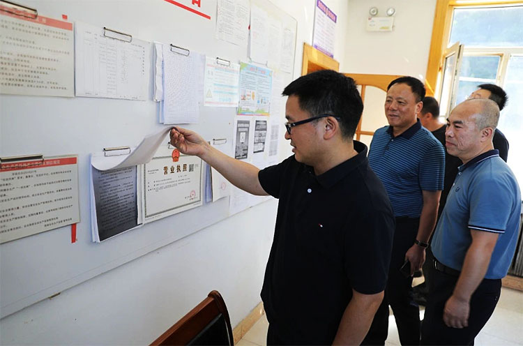 在红石林业公司,周勇详细了解该公司加油站油品进货渠道、安全设施管理和维护以及安全生产制度建立等情况,走访了基质蓝莓基地、游客集散中心和创业孵化基地,对生产经营和安全生产情况进行实地调研。