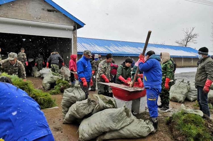 细——细化苗木管理。对每一批次采购回来的苗木第一时间卸车、查验质量和数量;克服雨雪天气不利条件,及时对苗木进行浸蘸保湿剂、窖藏处理;按栽植配比给从业单位调拨苗木,滞留在山场的苗木进行假植,让苗木根部始终保持湿润,保证苗木活性。
