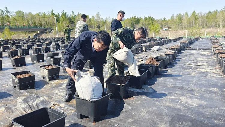松江河林业公司与深圳蓝美眉公司合作开展的森林食药产业项目,经过一年的发展已初见成效。今年,双方再次合作投资2000万元,将基质蓝莓种植面积扩增270亩。为抢抓农时,确保在最佳的栽植时间内完成新增基质蓝莓作业,自5月8日以来,公司组织机关全体干部职工到板石河林场基质蓝莓基地进行蓝莓生产作业。在作业现场,干部职工有序地铺设防草布,将培养基质倒入栽培盆中,按照规定行间距摆放栽培盆等。截至目前,已完成新增基质蓝莓70%的生产作业量。