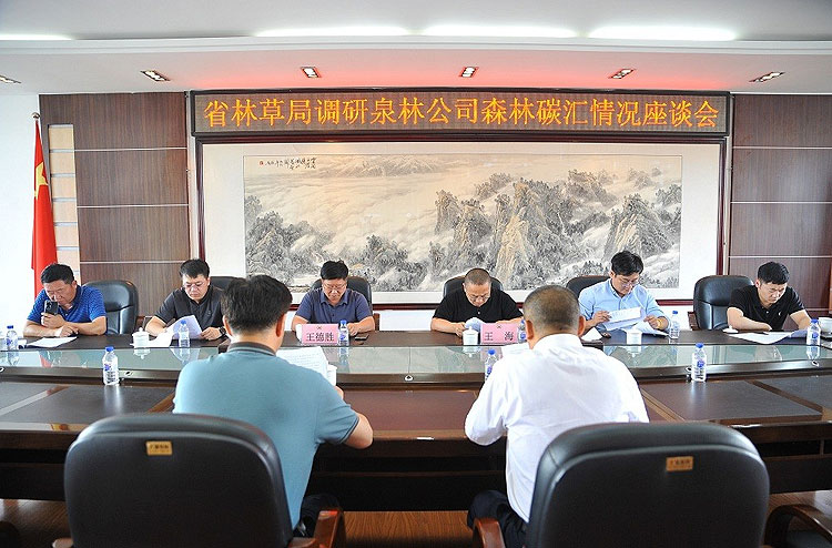 7月13日,吉林省林草局二级巡视员王德胜一行到泉阳林业公司就森林碳汇工作开展调研。 调研座谈中,泉林公司就森林碳汇工作的开展情况、存在的困难和问题,以及下步工作打算,向调研组作了详细汇报。调研组详细讲解了森林碳汇相关政策及全省林业碳汇工作开展情况,结合实际,分别从植被恢复、湿地与水资源保护、碳汇动态监测系统、环境微生物固碳、生物多样性保护、林业可再生能源等方面就推进林业碳汇项目开发方向提出了意见和建议。