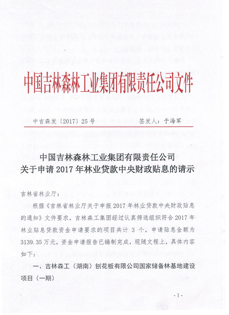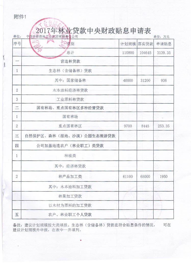 根据省林业厅有关文件要求,现对中国吉林森林工业集团有限责任公司关于申请2017年林业贷款中央财政贴息的请示进行公示。公示日期为2017年3月8日至3月17日。