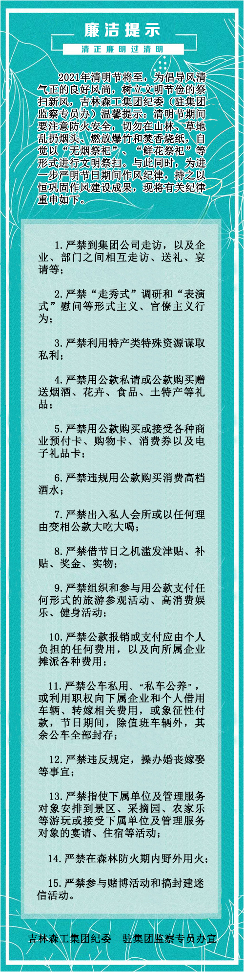 吉林森工集团2021年清明节廉洁提示