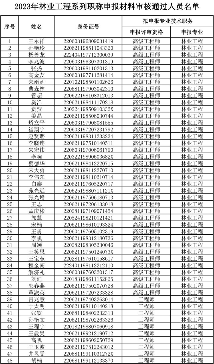 附件: 2023年林业工程系列职称申报材料审核通过人员名单