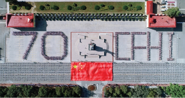 70年来,包括中国一重在内的大批国有企业的管理权限经历了多次调整、收放。图为今年国庆前夕中国一重干部职工在庆祝新中国成立70周年。