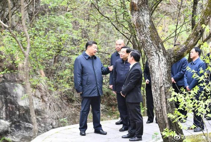 2020年4月20日,习近平总书记在位于秦岭山脉东段的牛背梁国家级自然保护区羚牛谷,了解秦岭生态环境保护情况。新华社记者 谢环驰摄