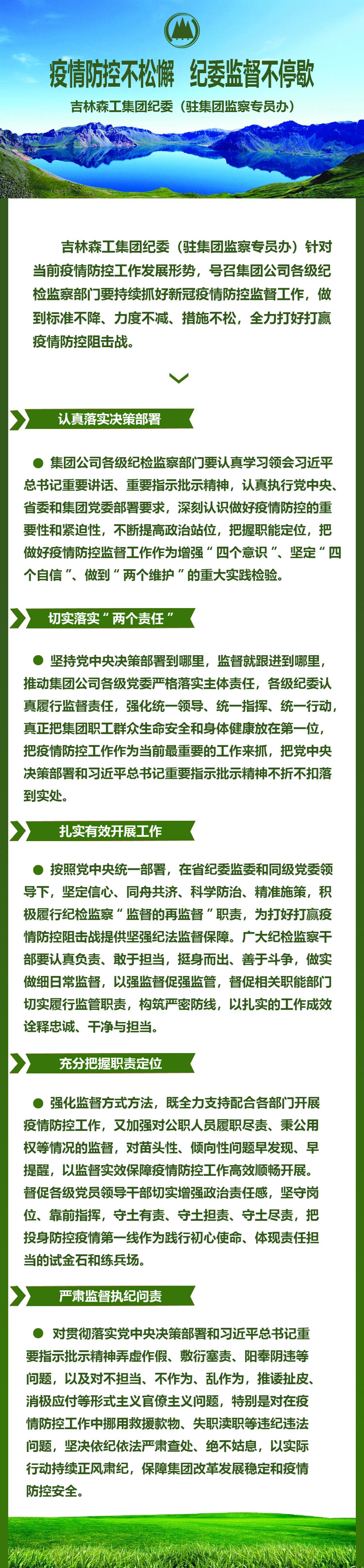 集团公司纪委(驻集团监察专员办)号召:疫情防控不松懈 纪委监督不停歇