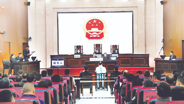 4月20日,郴州市苏仙区人民法院开庭审理靳卫涉嫌受贿罪、玩忽职守罪一案,图为庭审现场。(苏仙区纪委监委供图)