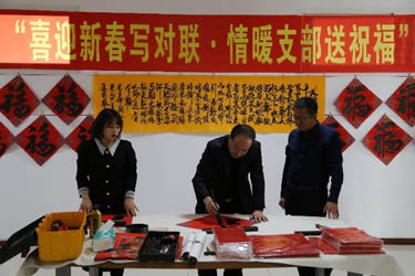 正所谓无联不成春,有联春更浓。春节将至,年味渐浓。新年伊始,1月21日,开发建设集团党委为践行党的十九大精神,充分展示弘扬中国传统文化,开展了“喜迎新春写对联、情暖支部送祝福”主题党日活动。并邀请国际书法家马国泰先生进行现场写作。