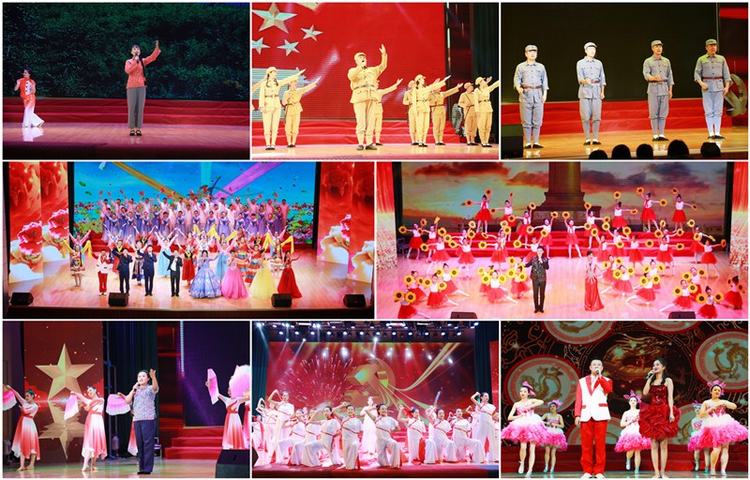 “从小爷爷对我说,吃水不忘挖井人……”伴随着清澈的童声导入,演出以一曲《在灿烂的阳光下》拉开序幕;《映山红》《弹起我心爱的土琵琶》《珊瑚颂》《我的祖国》等耳熟能详的红歌联唱情真意切,唤醒观众心中一幕幕红色革命记忆和真挚的家国情怀;红绸翻滚、激越奔放,《红色摇篮》以形象写意的舞蹈绽放出红色初心的坚守,还原出孕育了中华大地的希望与理想;合唱《不忘初心》传递了临林人心有所向、砥砺前行、永远跟党走的坚定决心;具有林区地域特色的歌曲《临江林区我的家》《山笑水笑人欢笑》欢快悠扬,唱响了新时代临林人植苗护绿、生态兴局、笃行“绿水青山就是金山银山”的使命与追求;舞蹈《林区的幸福花儿》活泼纯真,歌曲《中国美》喜庆热闹,洋溢着青春时尚气息的歌舞《点赞新时代》《我们都是追梦人》《青春誓言》动感新颖,带动观众互动合唱,将现场气氛推向高潮;在全体演职人员《圆梦中国》《同心共筑中国梦》的大合唱里,大家和着节拍,挥动红旗,抒发着临林儿女礼赞新时代、奋斗新征程的时代强音。