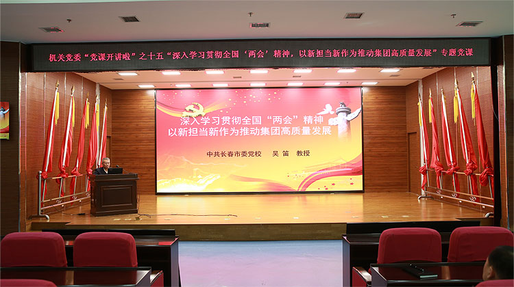 3月26日,吉林森工集团机关党委举办了“党课开讲啦”之十五“深入学习贯彻全国‘两会’精神,以新担当新作为推动集团高质量发展”专题党课,特邀长春市委党校吴笛教授授课,机关全体党员干部在五楼会议室现场聆听。