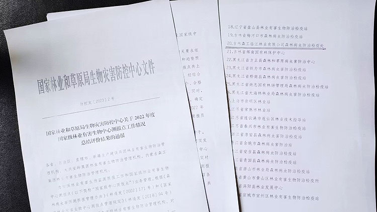 临江林业有限公司森林病虫防治检疫处获评2022年度先进国家级林业有害生物中心测报点