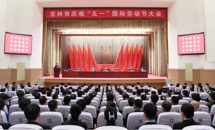 红石林业有限公司技能骨干登上吉林市庆祝“五一”国际劳动节大会领奖台