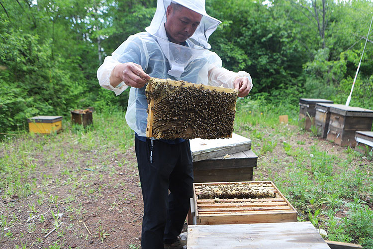 带着好奇心在木材检查站向外查看,蜜蜂在蜂箱和林间往来飞舞,香甜的蜜味扑面而来。“没事,这蜜蜂不蜇人,不伤害它们,还是很温顺的。”木材检查站站员周玉忠向记者说。辛勤淳朴的人、忙碌的蜜蜂与绿地蓝天,这就是有林区特色的乡土田园气息站。据介绍,截至目前,站区养殖蜜蜂30箱,依托站点周边良好的生态蜜源植被,按花季出产不同蜜源的蜂蜜,每箱每年可以产蜜100斤左右。