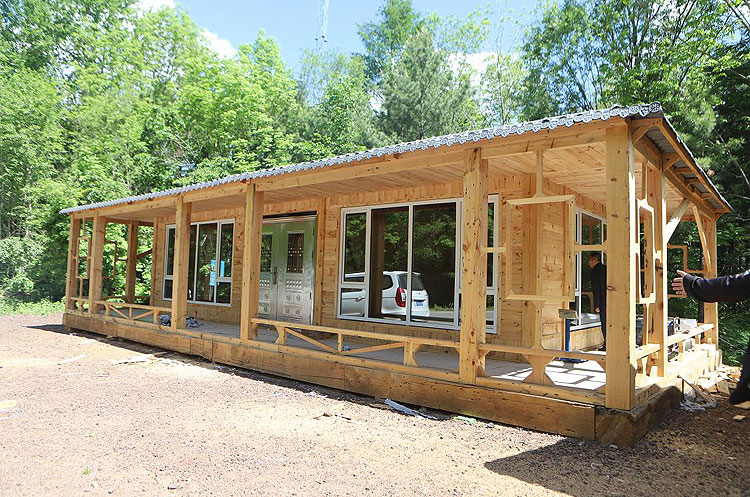 在检查站旁,纯木质结构的森林驿站框架已经树立,驿站占地面积90余平方米,配合林下种养殖的成熟,不久的将来,这里不仅是员工致富的站点经济区,更是森林特色小镇的体验园。