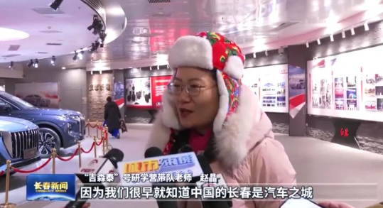 “吉森泰”号研学营带队老师 赵晶:因为我们很早就知道中国的长春是汽车之城,而且我们中国长春的制造业非常的发达,走向了中国,走向了世界,所以就想让孩子们看看我们中国的科技制造,看看我们中国的力量。