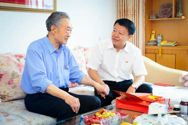 殷殷深情,浓浓关爱。为隆重纪念建党99周年,弘扬党的光荣传统和优良作风,充分体现党组织对党员的关怀和爱护,6月30日,松林公司党委书记、董事长、总经理黄吉文在党委副书记赵宝才及办公室、组织部、离退休管理处相关工作人员的陪同下看望了部分老党员、老干部,代表松林公司党委向他们表示亲切慰问,感谢他们为党的事业和松林经济社会发展作出的贡献。