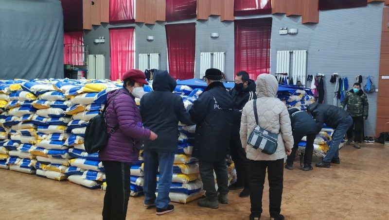 为保障节日福利顺利发放,离退休职工管理中心全体工作人员提早来到发放现场,铺撒炉灰渣、铺设防滑垫,做好各项准备工作,保证人员安全。发放过程中,工作人员分工有序,耐心地为前来领取米面的离退休人员做好开票、登记和发放工作,真心实意为离退休职工服务,将好事办好。 |