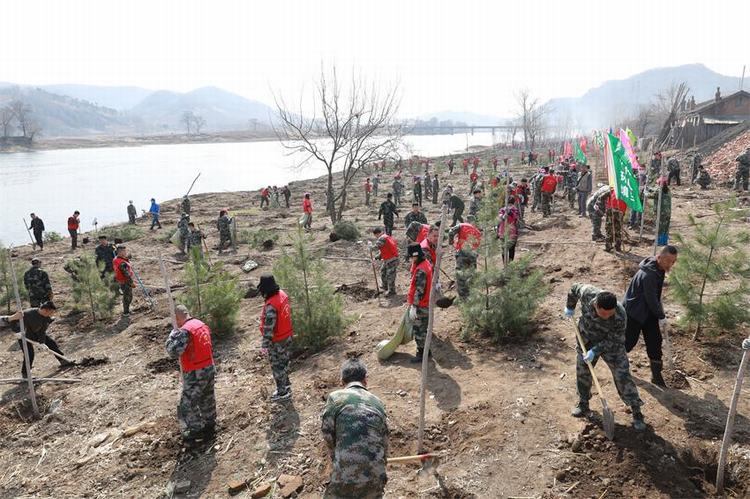 在沿江路义务植树点,大约13000多平方米的江边开阔地内,原有的低矮平房和圈占的小块地已经消失不见,经过拆迁治理和环境整治,规划构建成为水绿融合、适宜休憩散步的红林群众“后花园”。此时此刻,鲜红的党旗、各色彩旗以及“绿化家园全民行动 共建文明幸福红林”、“共建希海林 共享文明果”等横幅迎风飘扬,将植树现场渲染得庄重而热烈,参加活动的领导和员工一起搬运树苗、扶苗培土、拎桶浇水,新种下的一千余株红松、杨树、柳树树苗迎风挺立,生机勃勃。