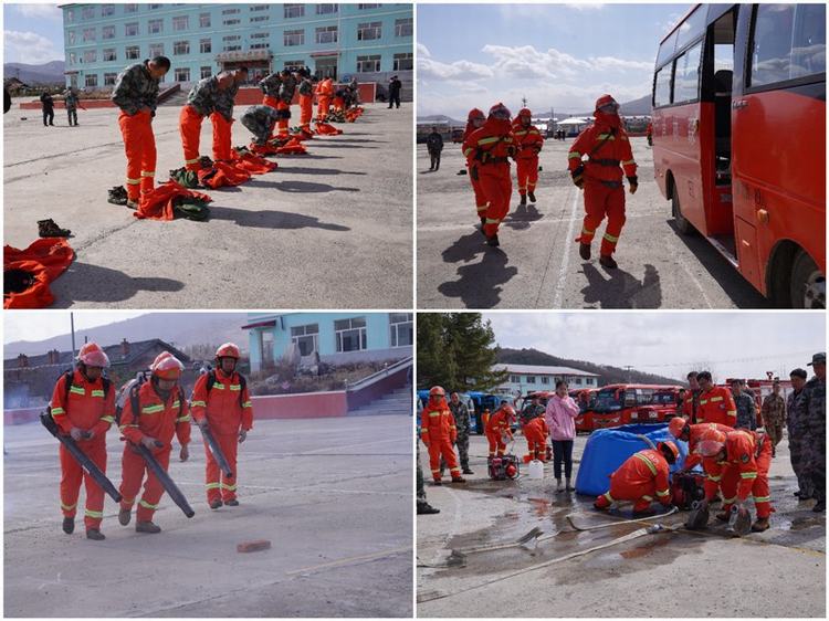 随后,经抽签决定分组后,在桦树中学操场上,技能竞赛第一项——着装蹬车正式开始。两只队伍迅速跑步到防护装备摆放区,训练有素地穿好防护装备,依次蹬车,启动运兵车,裁判员根据队员们着装整齐程度、蹬车用时时长等进行了评分;风力灭火机操作与使用竞赛中,两组参赛人员迅速启动风力灭火机,并背负奔跑到10米远的目标作业点,同组三名队员协同配合完成既定任务;水泵架设与撤收项目,检验了参加队员们启动水泵、安装水带、配合灭火、“圆盘”式撤收管带、水泵及附属配件归位的操作熟悉程度和团结协作精神;800米跑项目,参赛队员们用顽强拼搏的精神充分展示了训练成果。