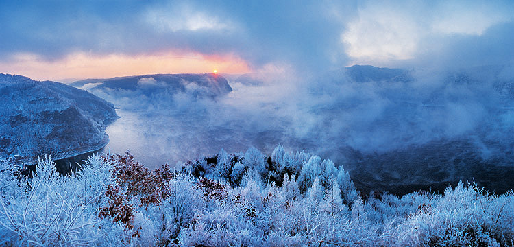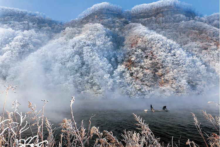 吉林雾凇因与泰山日出、黄山云海、钱塘涌潮并称为中国四大气象奇观,而红石雾凇则是吉林雾凇的孪生姊妹。那山,那树,那一草一木,都是因为松花江四季流淌着灵动的神韵,和浪漫的柔肠而变得在雪域绵绵的季节或婀娜多姿,或气壮山河。红石雾凇和吉林雾凇一脉相承,既有吉林雾凇的纤巧妩媚、风姿绰约,又有红石雾凇无可比拟的浑然天成,大气磅礴。  如果说吉林雾凇以带冲击视野,红石雾凇则以群幻化人间。红石国家森林公园的雾凇群位于松花江上游的白山、红石水电站形成的素有长白山下第一湖和东北第一狭湖美誉的白山湖和红石湖,下游丰满水电站形成的松花湖三个湖的百里湖面。红石雾凇群上至白山湖的两江口,下至吉林市,延绵百里,是目前已知的世界上最大的雾凇群。置身其中,漫步徜徉,或云桥放眼,雾里寻花,与饱享眼福之间得悟天人合一的妙蕴。待到晨曦冉冉,朝阳灿灿,雾凇分外妩媚妖娆,宛若涌起的仙山琼阁,海市蜃楼,气势雄浑,蔚为壮观。我们可以骄傲的说:红石国家森林公园的林海雾凇,是山水共舞时绘就的流动画卷,是天地挥毫间写下的绝美诗篇。 林海中的红石和城市中的吉林一样,与雾凇的缘分,是上天注定的,因为有了一条松花江,一条源自于长白山天池的江。红石的松花江又在吉林的上游,并在茫茫的林海雪原、魏魏的群山大川中飘然而过,大山里的人们就比城市中的人们更早、更多地享受到了这造化的神奇。