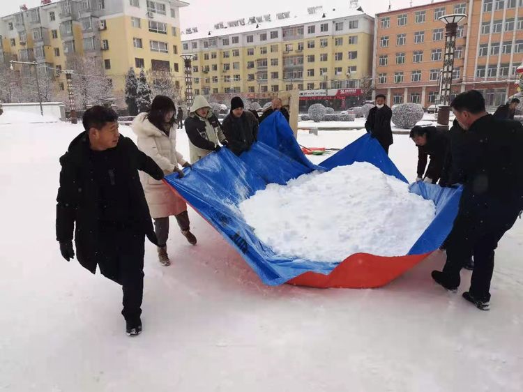 他们擦把汗、索性脱了棉衣,互相鼓劲,并肩战斗,谈笑中大家配合着把积雪攒堆、装运……文化广场逐渐露出了职工群众喜爱的鲜艳的颜色。