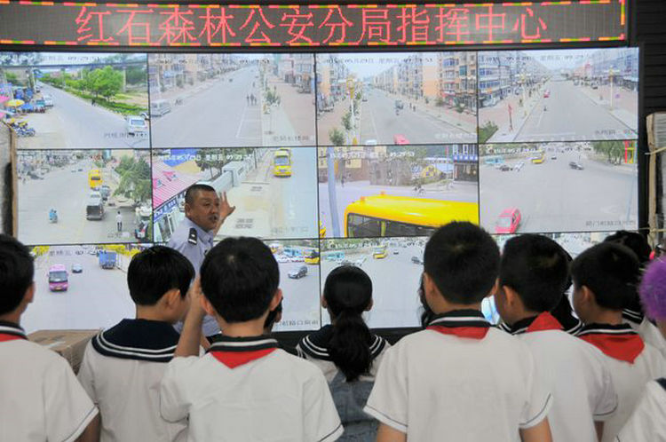 5月29日,吉林森林公安局红石分局巡特警大队组织开展了“小学生进警营”主题活动,桦甸市临江小学40余名师生代表走进警营,零距离感受了公安工作,学习了安全知识,度过了一个难忘的六一儿童节。 在巡警大队民警的引导下,师生们依次参观了巡特警大队办公室、备勤室和监控室等区域。在巡警生活区,当看到叠得十分规整的“豆腐块”和墙上悬挂的一面面锦旗时,天真烂漫的孩子们赞叹不已;在红石分局信息指挥中心,民警通过“平安红林”监控系统,采取互动的形式,向学生了详细讲解了校园安全、道路交通安全等知识,加深了学生日常安全防护意识,提高学生的自防、自护、自救的能力。活动中,民警还向小学生介绍了报警方式,讲授了防诈骗、防意外伤害等安全防范知识,认真回答同学们提出的各类问题,并结合生动鲜活的案例,介绍了青少年容易出现的违法犯罪行为,告诫同学们要树立法制观念,远离不良行为,提高辨别是非能力,增强自身安全防范的意识。师生们通过近距离参观,听取讲解,对公安工作有了进一步的了解和感受,心灵上受到了很大的感触。