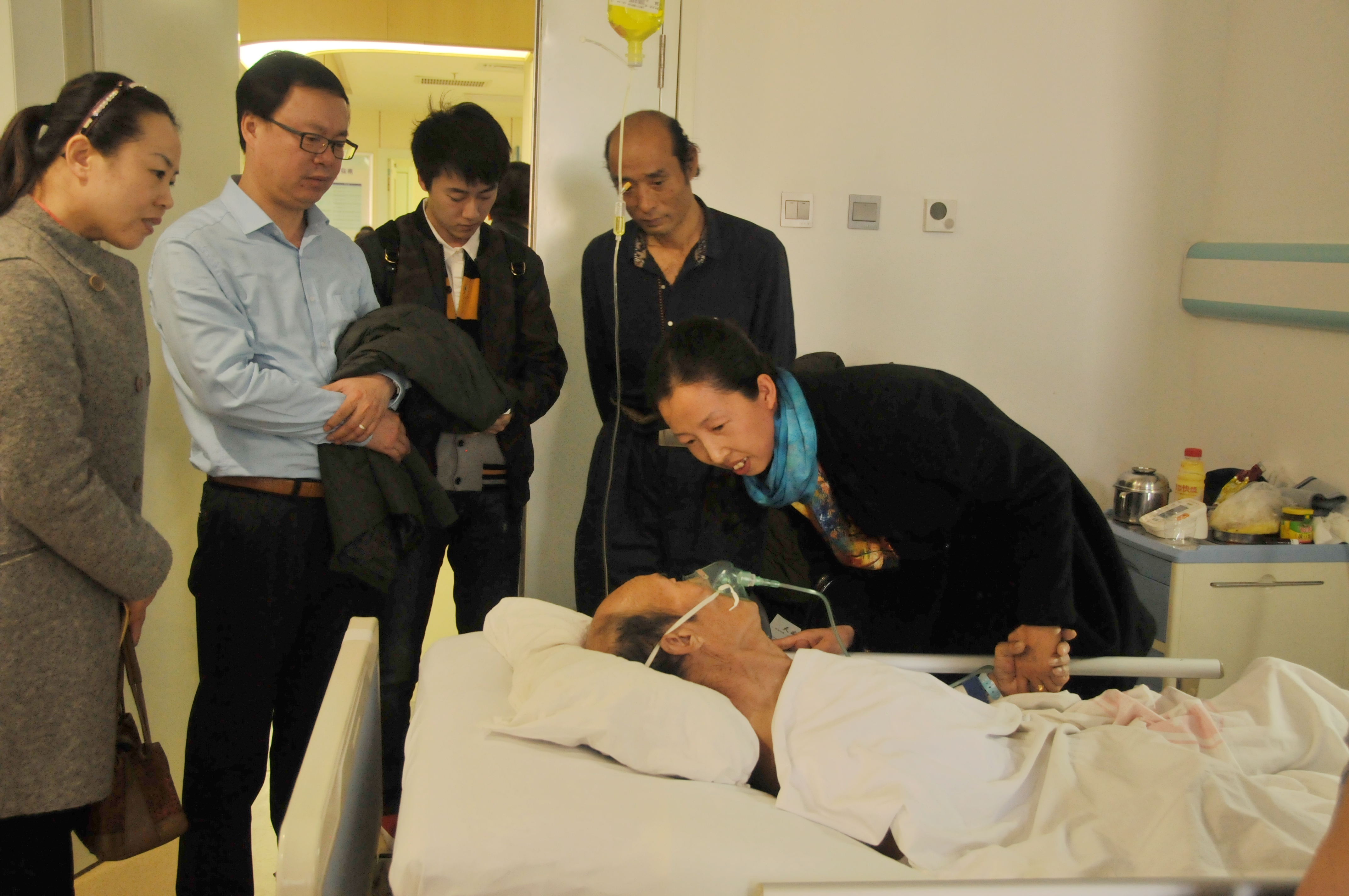 封霞详细的向主治医生询问老人的病情及医院的治疗方案。她嘱咐老人的儿子说,一定要照顾好老人的身体,生活上遇到任何困难,要及时和企业取得联系,林场会随时安排员工前来协助护理。在治疗过程中,企业会给予最大的帮助,全力医治老人的疾病。临行前,封霞代表企业为老人留下慰问品和5000元的慰问金。
