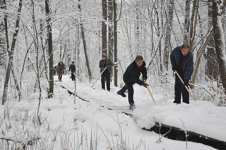 为加强景区安全管理,完善冰雪旅游服务,11月8日,泉阳林业局抚安森林资源管护大队组织干部员工对“奇特树”、“高山湿地”、“林子不开”等景区栈道积雪进行了集中清理。