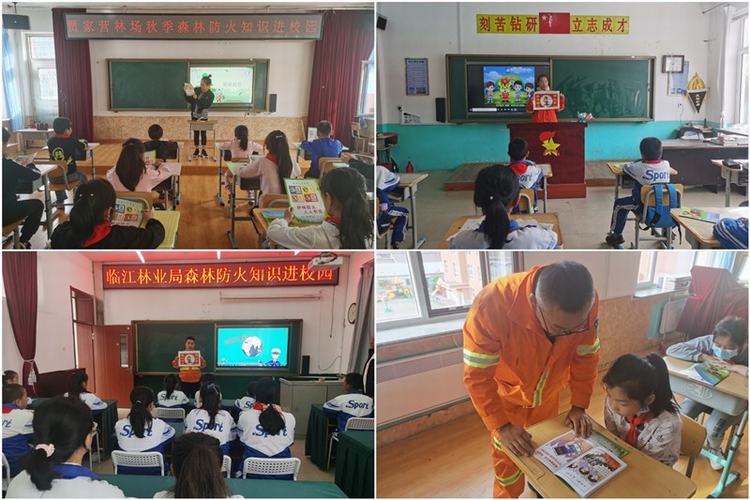 在临江林业局闹枝镇中心小学,闹枝林场森林防火宣传员结合《森林防火漫谈》为师生们讲解了农事用火及野外非法用火对森林资源的危害性以及遇到森林火灾的自救和报警方法,并通过多媒体观看了森林防火安全小常识;在桦树中学,桦树林场林政员为同学们发放了防火宣传册、宣传单,并用通俗易懂的语言讲解了森林的作用、森林火灾的危害、发生原因,怎样预防森林火灾以及森林防火“十不要”等知识,呼吁同学们将了解学习到的森林防火知识带回家,向自己的亲友、邻居做好宣传;在河南小学和立新小学,防火办工作人员以讲解森林火灾案例、发放宣传单、播放森林防火知识PPT、开展森林防火知识有奖问答等方式,向师生们宣传了野外用火的危险性、如何有效防止森林火灾以及发生森林火灾时的自救自护方法;在蚂蚁河乡中心学校,贾家营林场工作人员结合学生接受能力特点,制作播放了PPT文档演示,并以问答互动的方式宣传讲解了森林防火常识,叮嘱同学们不要把火种带进山林,发现火情要迅速报警,争做森林防火“小卫士”。