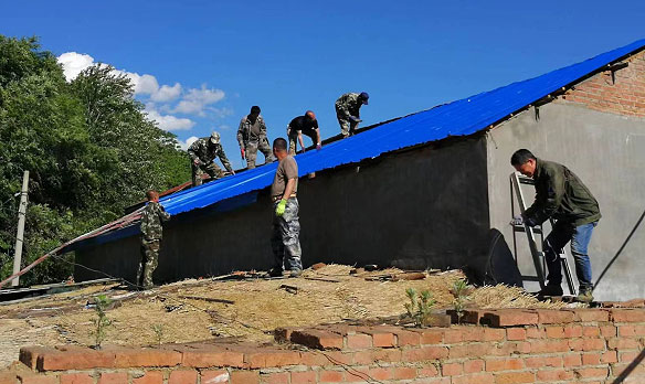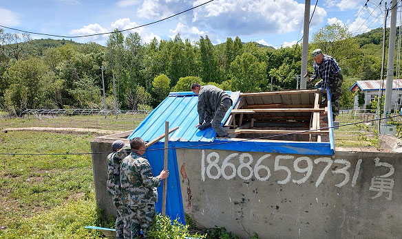 6月3日晚,白石山林业公司双山林场遭受强风灾害,林场及员工家房屋都不同程度遭受损坏。灾情发生后,林场党支部迅速组织党员干部开展救援。利用林场工作微信群掌握员工受灾情况,现场爬上房顶协助修缮。同时对高、低压线路开展隐患排查,以防发生漏电情况。共出动党员干部28人、车辆1台,修缮林场房屋屋顶4处,协助员工修缮屋顶3处。