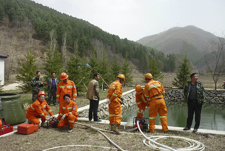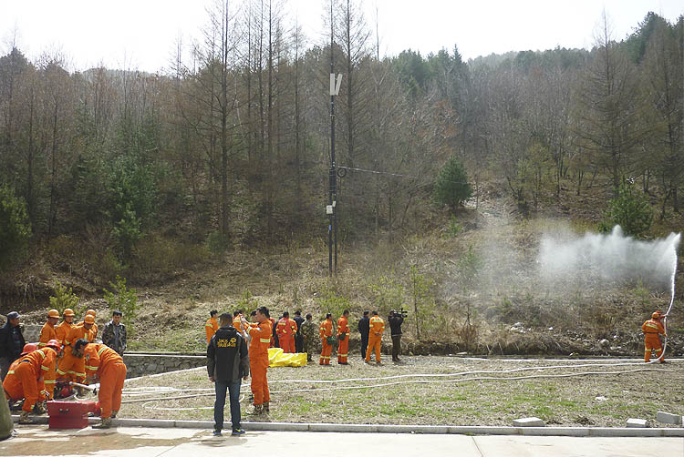水泵架设、管带连接和收存演示结束后,所有参加演练的扑火队开展了水泵架设、管带连接的平地和山坡地两种不同地形的实战演练。演练中,临江林业局参加演练的两支扑火队训练有素,动作麻利,从水泵架设、管带连接到水枪喷水,各扑火队员分工明确、配合默契。武警白山市森林支队靠前驻防指挥官对现场演练中的相关技术、战术进行了现场指导。