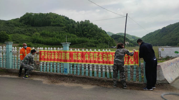 行动中,联合巡护人员先后来到义和村、通林菌业种植基地,通过进村入户,深入政府机关、企业和田间地头等方式向工作人员、村民群众发放野生动物保护宣传单,宣讲野生动物保护知识及相关法律法规,并及时更换沿途损毁褪色的野生动物保护警示横幅,倡导大家以抵制乱捕、滥猎野生动物行为为荣,以狩猎、贩卖、食用野生动物为耻,正确树立健康的饮食观念和文明的社会风尚。