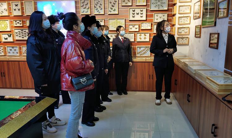 在临江林业局长白山生物标本室,联合宣传教育活动组工作人员在解说员的引导下,了解了标本室的由来、昆虫种类和数目、标本的制作过程、标本采集地以及一些注意事项等,并学习了林业有害生物防治相关知识。在闹枝镇中心小学,工作人员向在校师生发放了保护野生动植物宣传单,向学生们详细介绍了辖区内野生动植物种类,教育引导师生提高生态保护意识,从自身做起,保护好辖区野生动植物,形成小手拉大手,带动家庭和社会成员共同参与到野生动植物保护的行列中来。在闹枝镇冰湖村,工作人员向村干部及村民们宣传普及了《中华人民共和国野生动物保护法》《中华人民共和国野生植物保护条例》等相关法律法规及野生动植物保护科学知识。