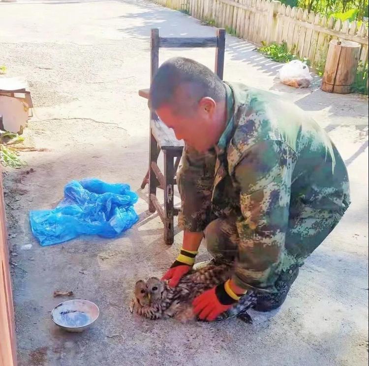 9月1日,松林公司马鞍山林场巡护员在巡护过程中,发现一只右翅受伤的猫头鹰,巡护员立即采取营救措施,把它带到了附近的管护站进行救治,在林场职工的细心照料下,猫头鹰慢慢开始进食,并能独立站立。
