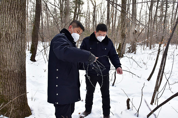 启动仪式结束后,联合行动组深入大川林场施业区,在易发生非法猎捕犯罪行为的重点区域展开了拉网式排查,对可能安装猎套、猎夹、猎网等捕猎工具的树空儿、灌木丛、草丛等位置进行仔细检查,对发现的非法猎捕工具当场进行拆除,消除野生动物栖息地安全隐患。出动人员60余人次、车辆18台,清理猎套3个、猎夹1个、猎网1张。 |