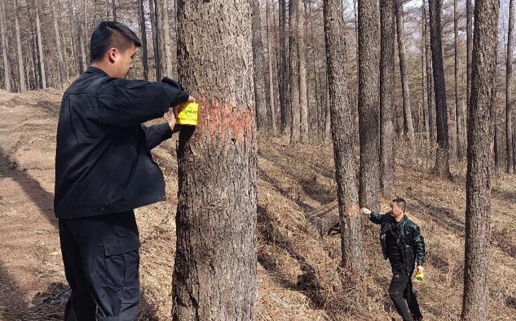 技术人员根据2022年落叶松毛虫越冬调查数据及历年发生情况,选取有代表性的林地,设立落叶松毛虫调查标准地88块,采用阻隔法,各选取标准株20株,于胸高处缠绕宽约20cm的塑料环,定时检查记录数据,了解越冬幼虫上树不同时期密度,掌握其分布区域、发生面积及危害程度。以便及时发布虫情监测预报,科学防治,确保松树林资源安全。近年来,临林公司通过采取飞机喷药、施放烟剂等措施,达到辖区内落叶松毛虫灾情有虫不成灾的效果。