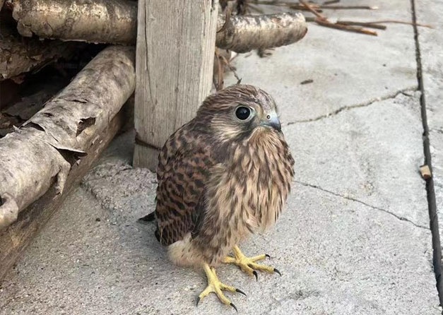 近日,白石山林业公司森林产业发展处宋戈同志在回家途中的柴垛附近发现一只受伤幼鸟,运用所掌握的野生动物保护知识确定为一只红隼,为国家二级保护动物。他第一时间联系天保中心工作人员,及时进行救助。