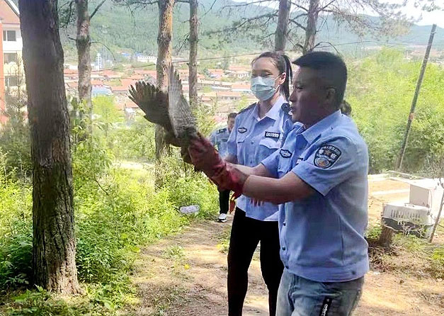 5月29日,完全恢复健康的红隼被放生,重新翱翔在广阔的蓝天。