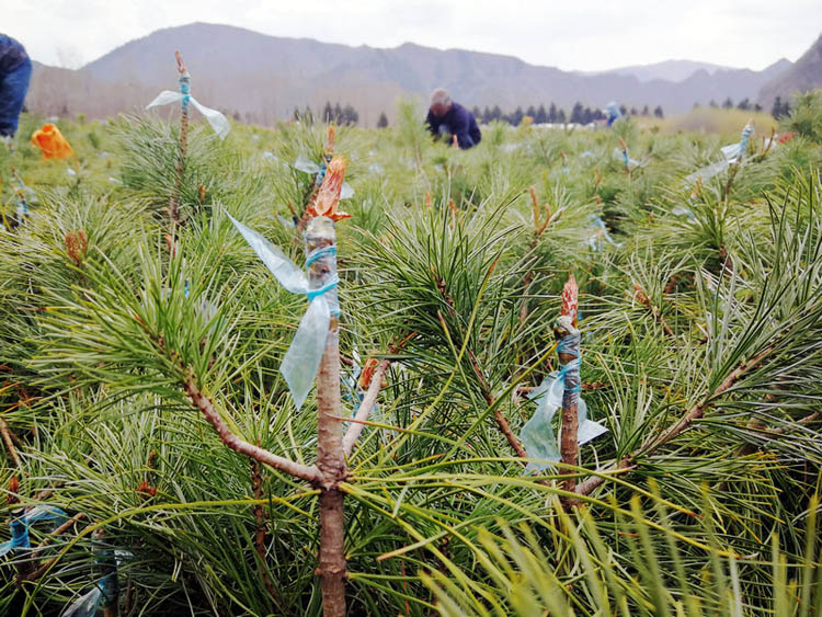 连日来,临江林业局种苗繁育公司聘请专业技术人员对圃存4年生红松杯苗进行嫁接。嫁接后的红松杯苗不但市场销售前景广阔,而且比单独销售红松杯苗每株可增加利润4元左右。 此次红松杯苗嫁接,是将30年以上树龄的红松幼枝嫁接到4年树龄的红松杯苗上,待嫁接苗木成活后造林,可大大促进红松提早结实,使人工红松林的结果期提前十几年,从而实现生态效益及经济效益双丰收。