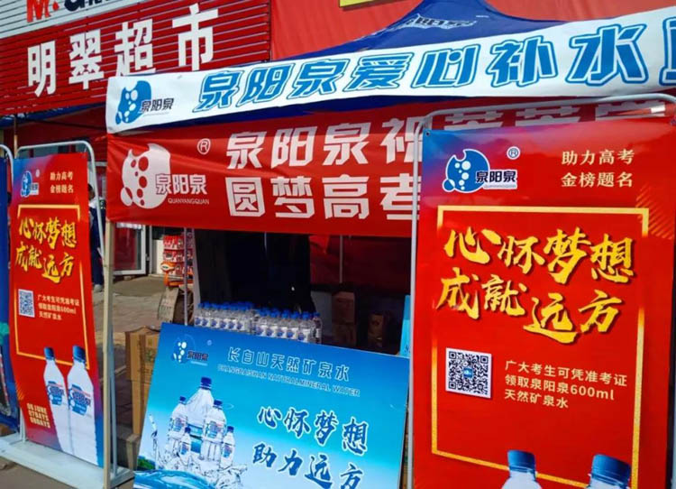 7月7日一大早,所有的物料及货物均抵达各高考地点,泉阳泉的先锋部队们,第一时间赶到考点场地并完成搭建。此时此刻,泉阳泉的每位兄弟姐妹,都是为高考服务的“货物搬运工”,把空无一物的街道,打造成了能够遮阳避雨的桃花源。据悉,高考期间,泉阳泉团队在吉林省、辽宁省等地的十六个城市,二十余所学校等主要考点周围设置“高考爱心补水站”,为考生们准备了数万瓶的泉阳泉天然矿泉水。