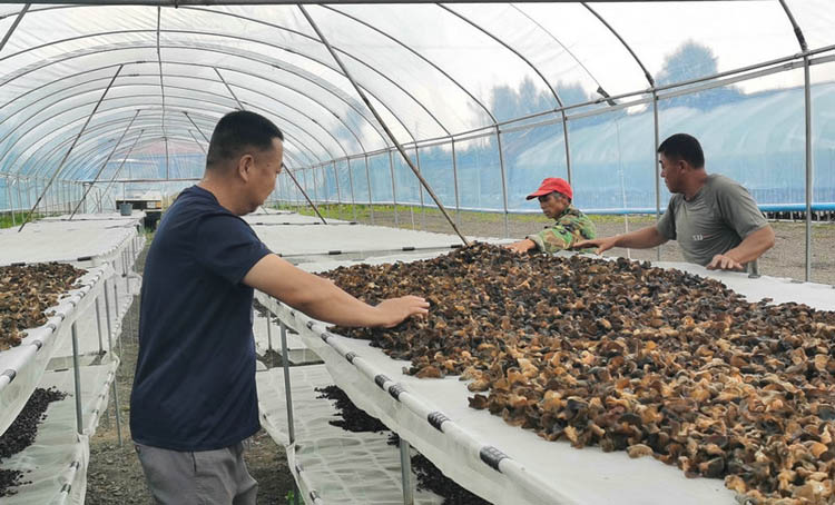 目前,邵荣全培植的木耳已采收鲜木耳近900斤,全部在晾晒棚内晾晒。据了解,吊袋大棚内的木耳可采摘至9月份,预计纯利润1.5万元左右。