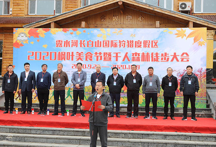 金秋时节,露水河长白山国际狩猎度假区碧水长天、丹枫如火、五彩斑斓、满目缤纷。9月25日,2020枫叶美食摄影节暨千人森林徒步大会盛装开幕。
