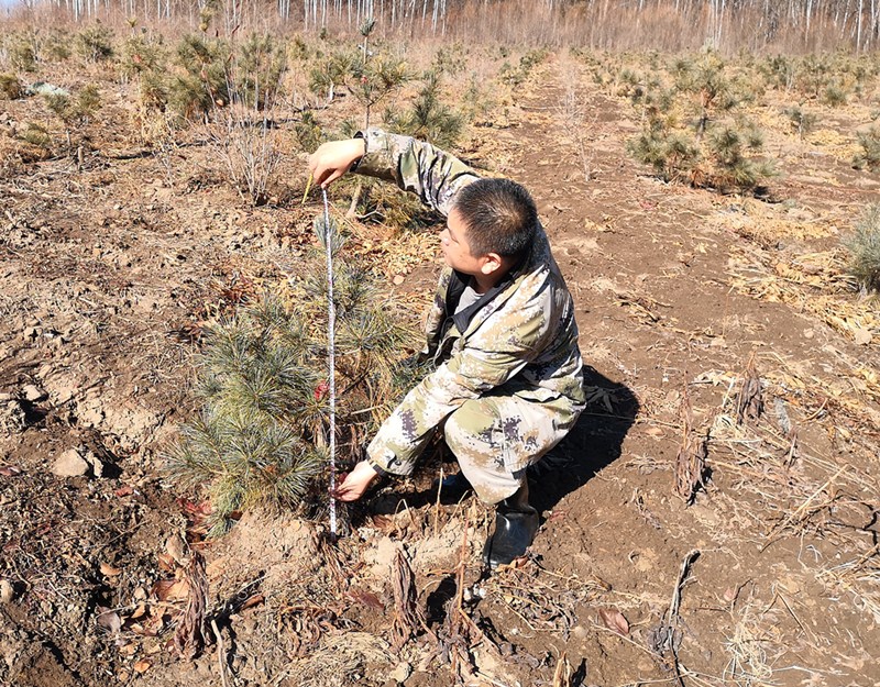 近日,临江林业局森林经营培育中心森林经营质量检查验收处对位于西小山林场54林班7小班的"全省果用红松对比林"进行了苗木成活率验收。