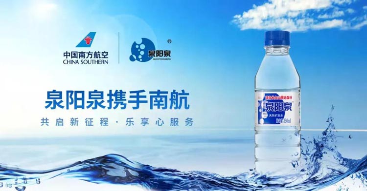 2021年12月,泉阳泉通过参加南方航空公开招标,成为其2022—2023年全国范围机上饮用水供应商,供应基地覆盖17个省,28个城市及34个基地,此次签约开启了泉阳泉与南方航空战略合作的新篇章。
