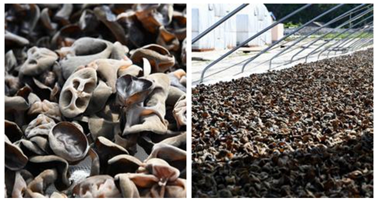 今年种植工艺参数控制严格,日常管理到位,又抓住了第一遍采收和晾晒的有利时机,“头茬”黑木耳乌黑光润,纹理清晰,朵形整齐,嗅之清香,质量上乘,产量喜人。