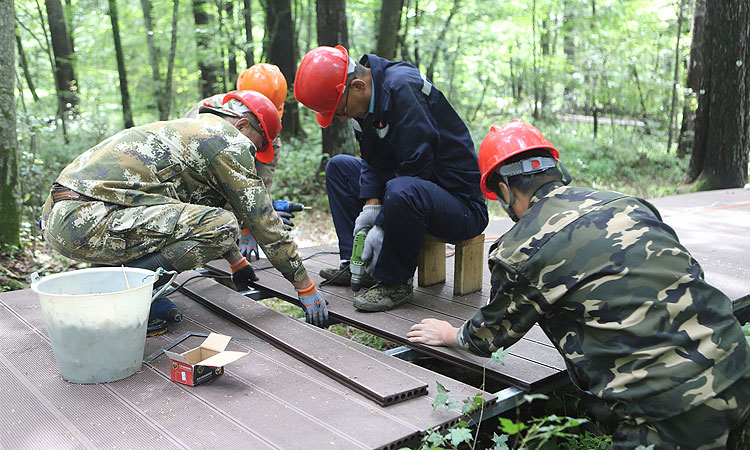 此次施工在原有红松王步道基础上向原始森林内延伸,新建的森林步道以“生态环保自然”为理念,在建设过程中“最大限度保护现有植被,最大可能串联名贵古树”,充分利用得天独厚的自然资源进行保护性开发和开发性保护。