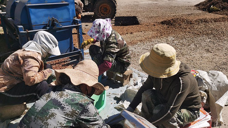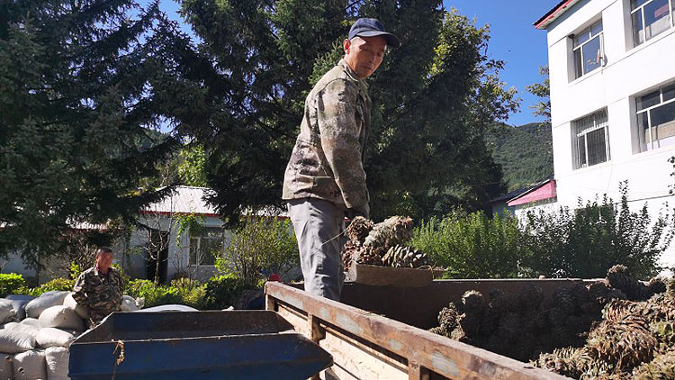 在良种采收过程中,种苗繁育分公司领导每天带班作业,现场监督各项措施落实和工作推进情况,有序组织采塔、捡拾、验收、运输等工作,确保当天采摘的松塔全部入库。历时9天时间,顺利完成红松塔采收工作。松塔入库后,组织党员突击队开展脱粒、分选作业,各流程配合有序,忙而不乱。再经摊平晾晒,去除湿气、天气转冷后,装袋进入冷库贮存。