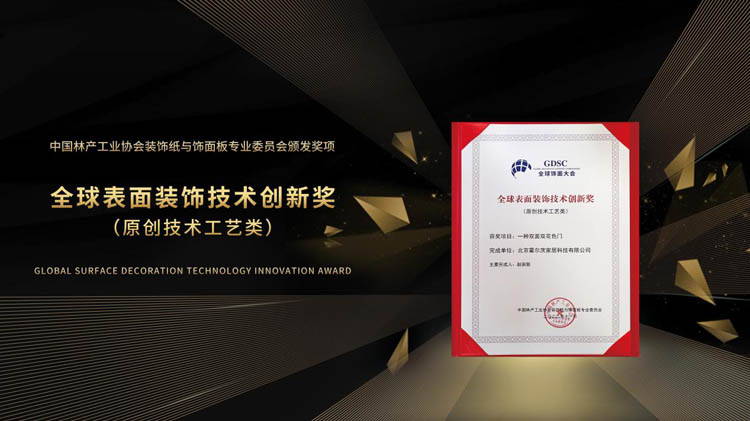 2022年11月,霍尔茨获得由中国林产工业协会与饰面板专业委员会颁发的“全球表面装饰技术创新奖”。这一奖项为消费者带来“色纹并美”的空间体验,彰显了霍尔茨强大的研发力,以及不断创新更迭产品以满足消费者更健康生活需求的锐意进取精神。