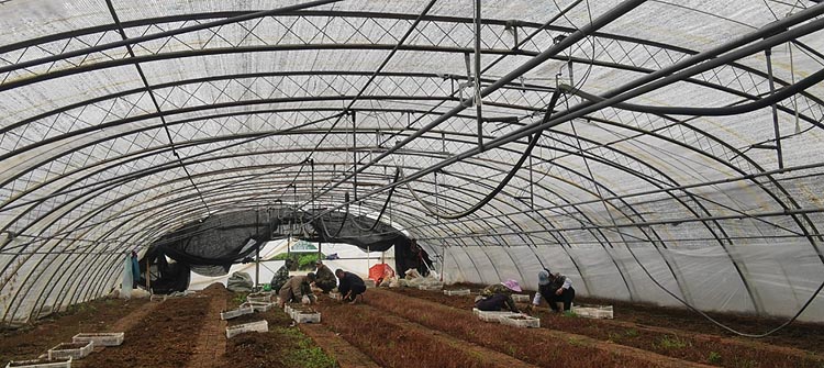 在公司种苗繁育分公司西南岔苗木种植基地,本着“节约利用”的原则,将原松林鸳鸯湖苗圃地拆解的大棚钢架构件,按照蓝莓温室大棚和育苗大棚施工要求,进行焊接组装,同时升级加装相应的喷淋和温控设施,建成一座座标准化、现代化的温室和育苗大棚。